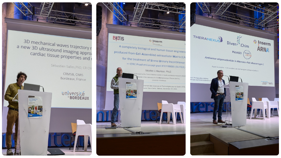 Nicolas L'heureux (BioTis), lauréat ERC proof of concept 2024 pour le projet "SUITEX : A completely biological and human tissue-engineered sling produced from Cell-Assembled extracellular”, a présenté ensuite les travaux menés par son équipe sur le traitement de l'incontinence urinaire d'effort ("Stress Urinary Incontinence - SUI"). La bourse POC a vocation à leur permettre de combler le fossé entre les découvertes issues de leur recherche exploratoire et l'application pratique des résultats.