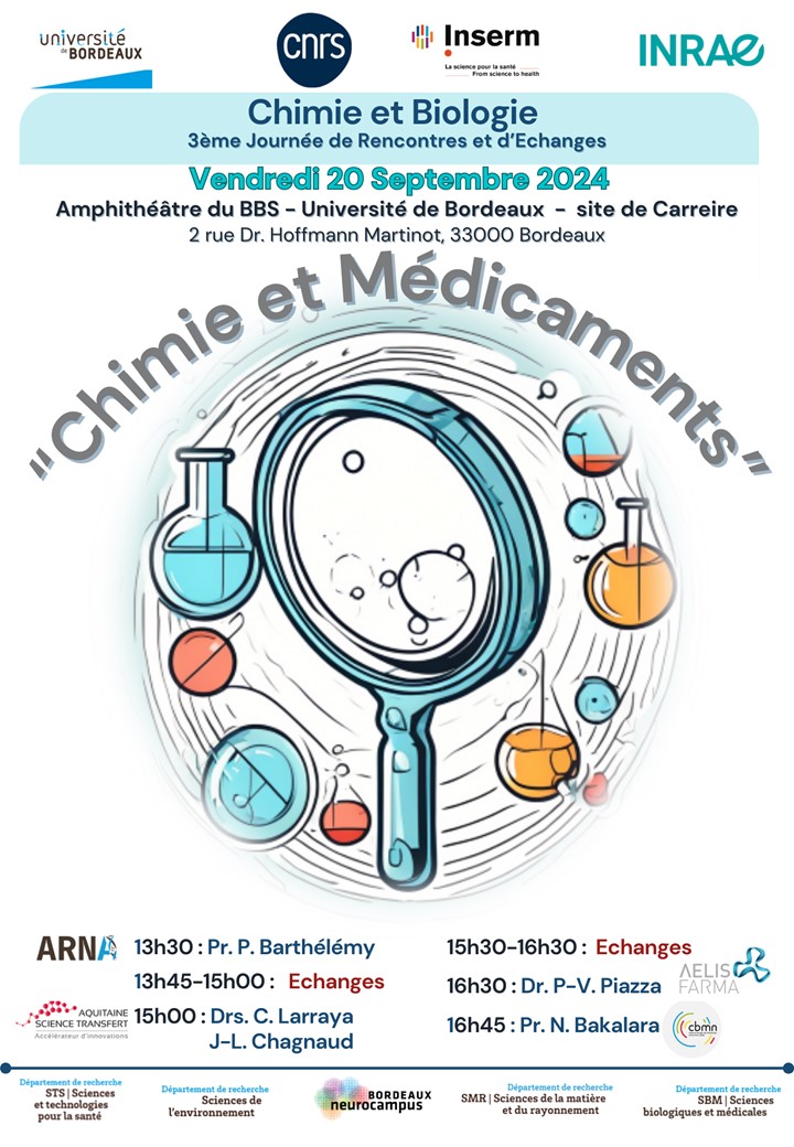 Le 20 septembre prochain dans l'amphithéâtre du BBS, sur le Campus de Carreire, se tiendra la 3ème journée de rencontre Chimie-Biologie.