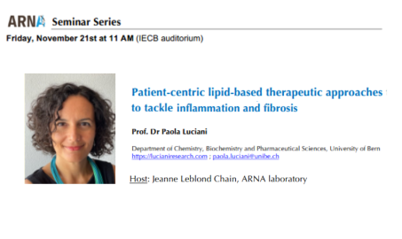 Paola Luciani présentera une conférence intitulée "Patient-centric lipid-based therapeutic approaches to tackle inflammation and fibrosis".