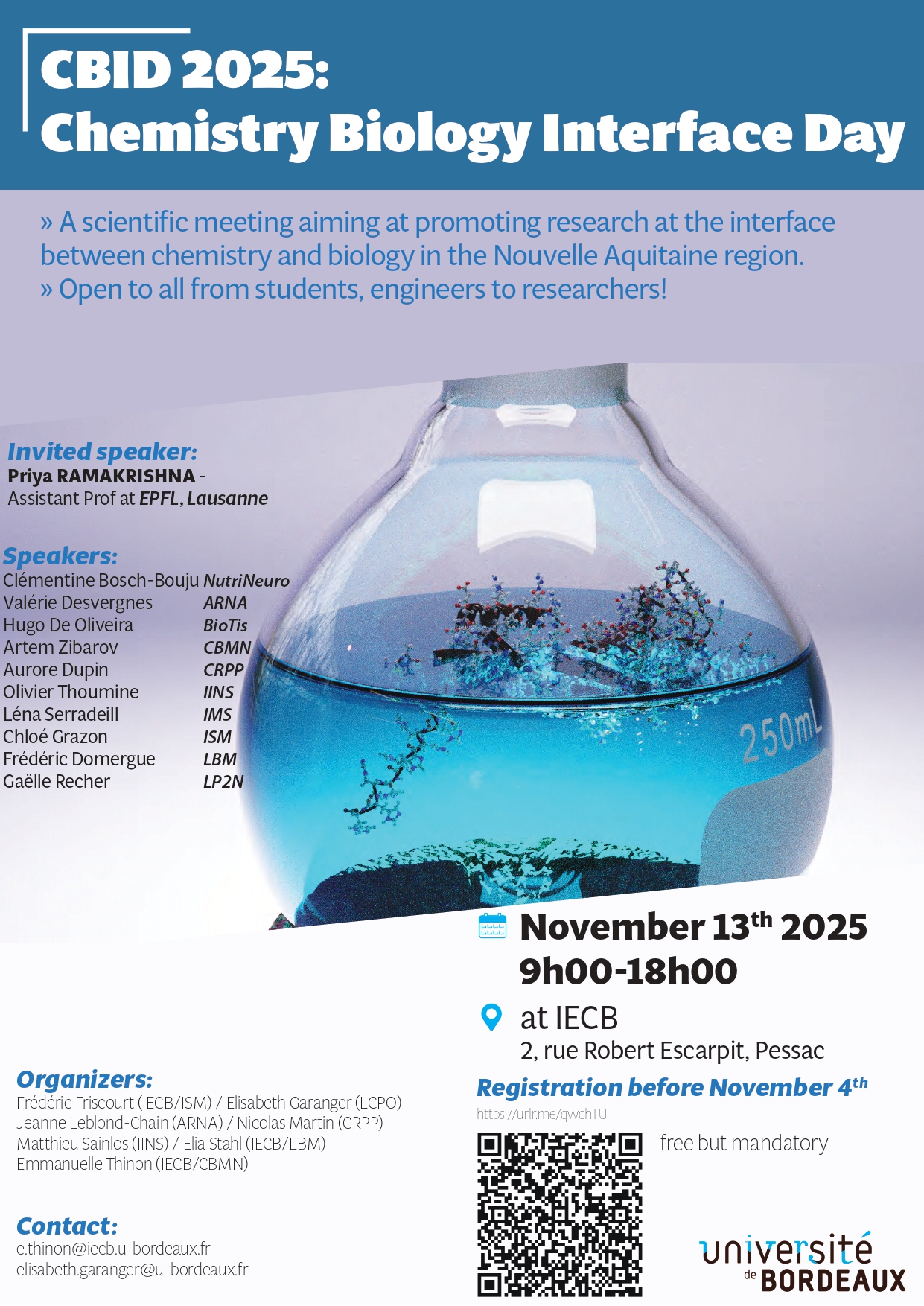 Link to register: https://framaforms.org/cbid2025-chemistry-biology-interface-day-nov-13th-2025-1758627368