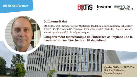 Guillaume Haiat présentera une conférence intitulée "Comportement biomécanique de l'interface os-implant : de la modélisation multi-échelle au lit du patient".
