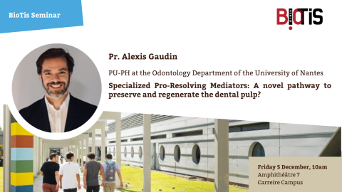 Le Pr Gaudin présentera une conférence intitulée "Specialized Pro-Resolving Mediators: A novel pathway to preserve and regenerate the dental pulp?"