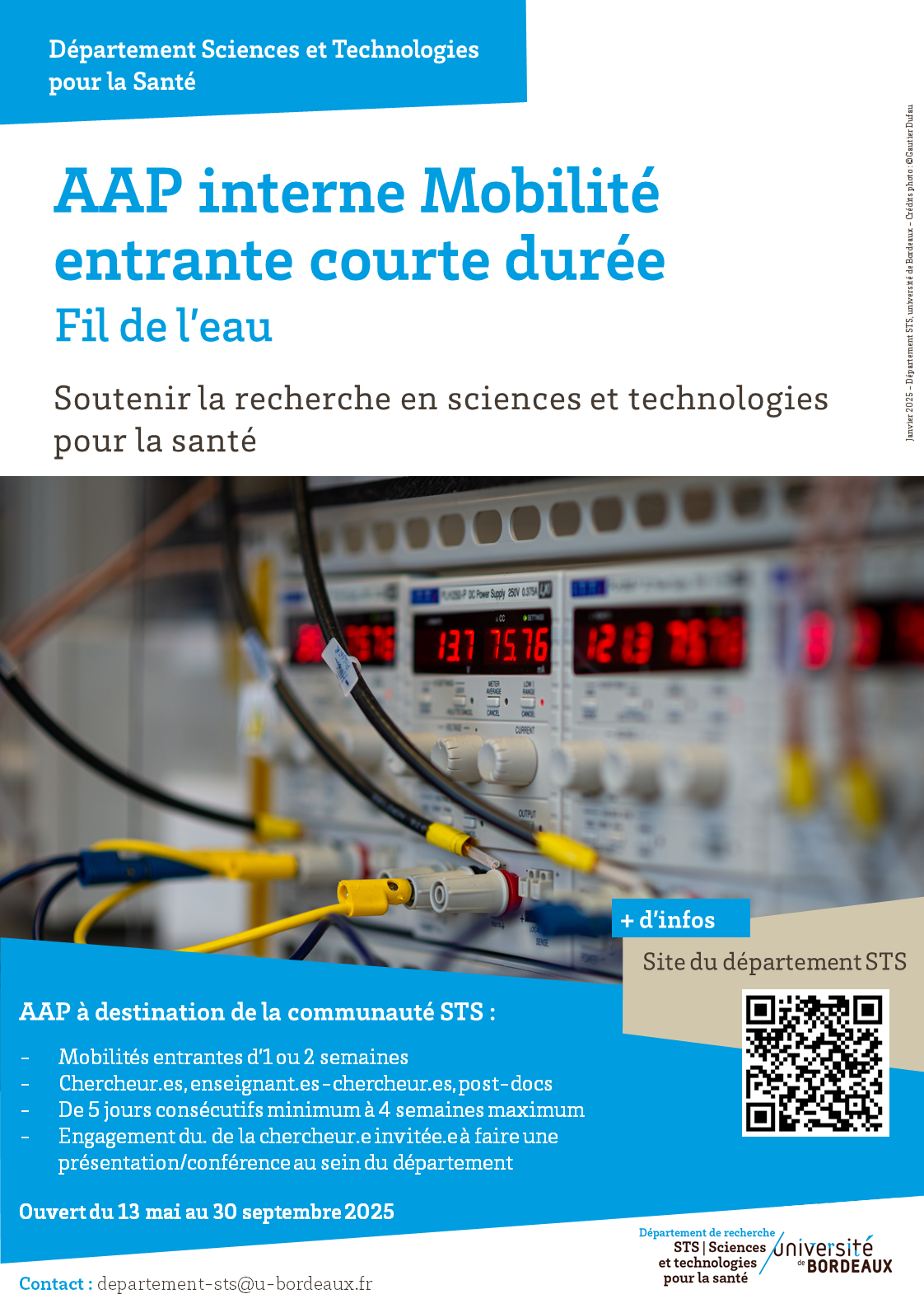 Le Département STS souhaite encourager les jeunes chercheurs(doctorants dans la deuxième moitié de leur thèse et post-doctorants), ingénieurs et techniciens des unités du département à participer à des manifestations scientifiques pour y présenter leurs travaux de recherche.